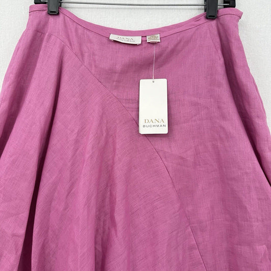 Dana Buchman Skirt Womens 10 Linen Midi Pink Asymmetrical Zip Coastal Barbie NEW