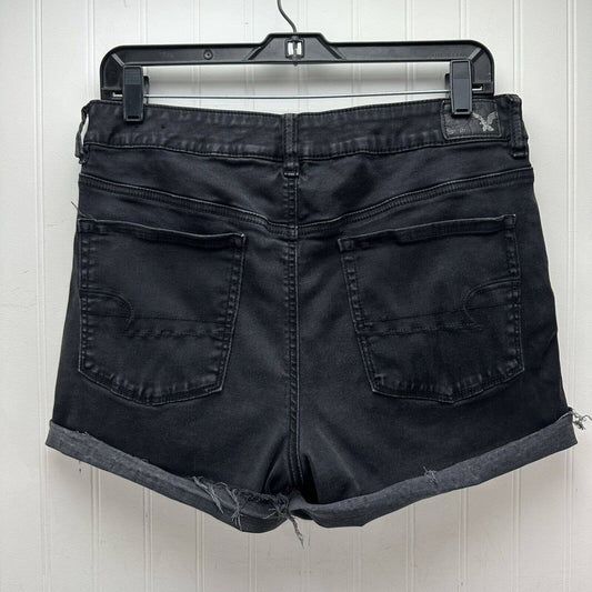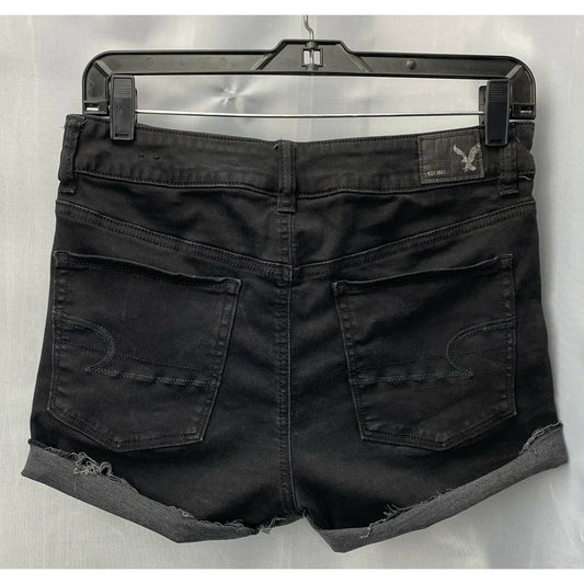 American Eagle Hi-Rise Shortie Sz 8 SuperSuper Stretch Black Denim Shorts RawHem