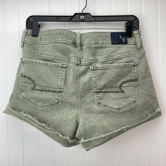 American Eagle Hi-Rise Shortie Sz 8 Super Super Stretch Green Denim Short RawHem