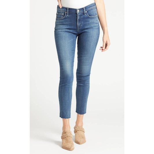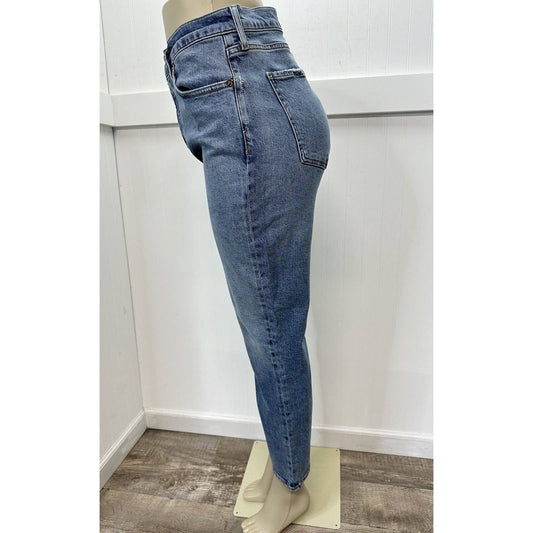 AGOLDE Sophie Crop Jeans Womens 24 Midrise Blue Denim Medium Wash Raw Hem Fray