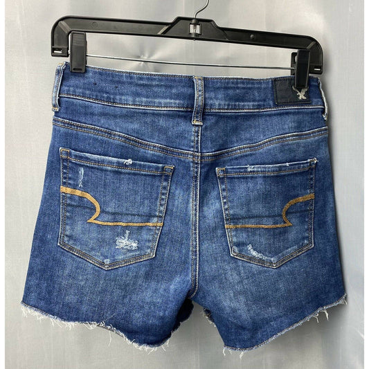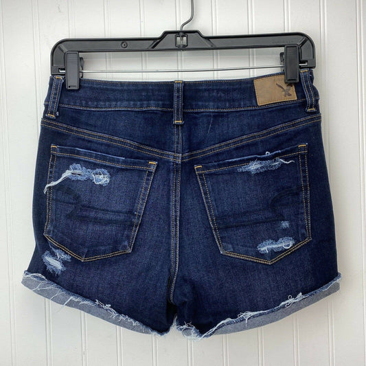 American Eagle Hi-Rise Shortie Sz 6 360 Super Stretch Denim Shorts Holes EUC