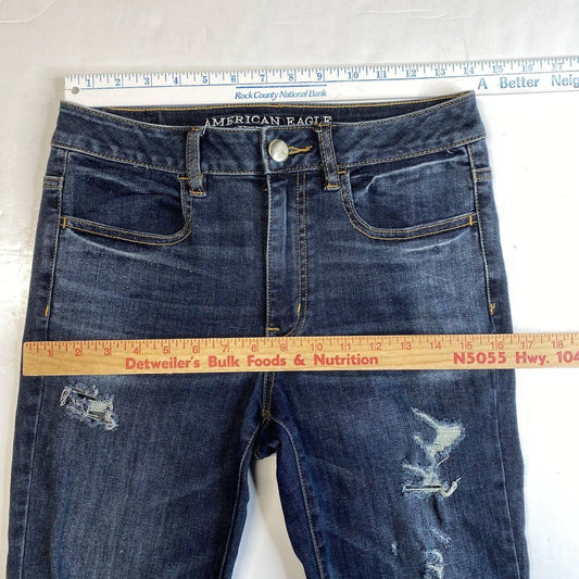 American Eagle Hi-Rise Shortie Sz 8 Super Super Stretch Denim Blue Jean Distress