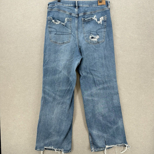 American Eagle Jeans 18 Baggy Straight Curvy Super Hi Rise Denim Distress *Flaw
