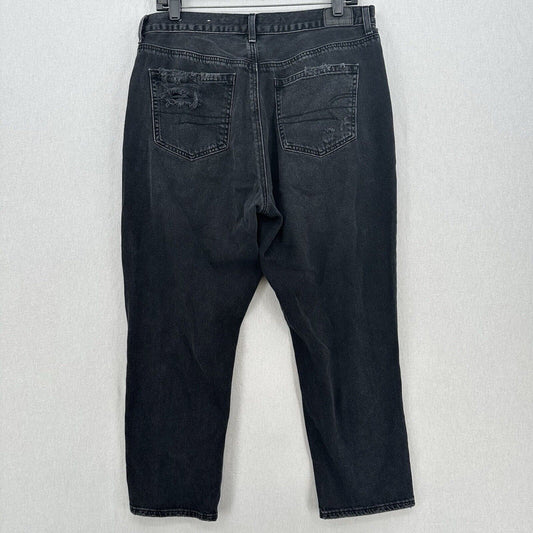American Eagle Jeans Womens 14 Short Mom High Rise Faded Black Denim Distressed
