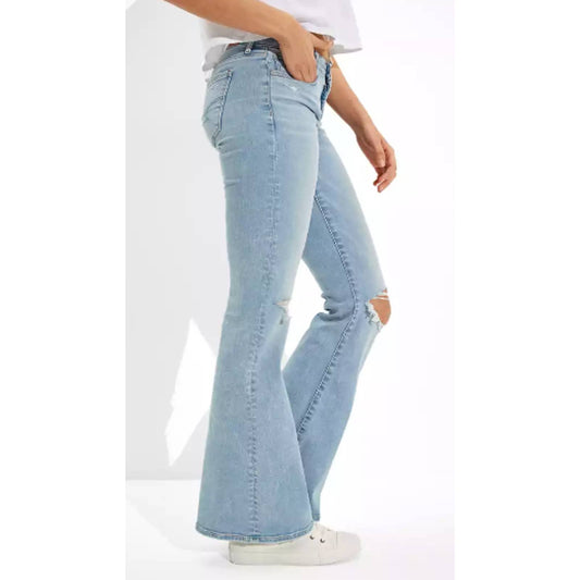 American Eagle Lowrise Flare Jean 20 Next Level Stretch Denim Distressed NEW