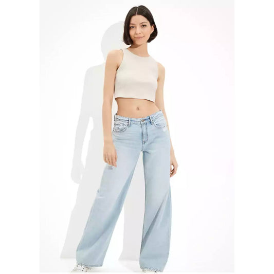 American Eagle Lowrise Baggy Wide Leg Skater Jean 18 Light Denim Distress NEW