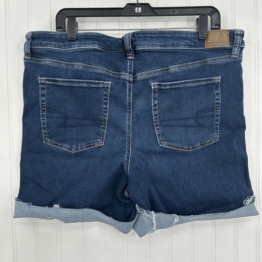 American Eagle Shorts Womens 14 Midi Blue Jean Denim Super Stretch Distress Fray