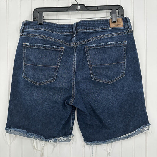 American Eagle Shorts Womens 14 Tomgirl Bermuda Blue Jean Stretch Denim Raw Fray
