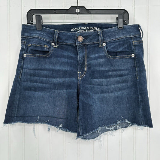 American Eagle Shorts Womens 12 Midi Blue Jean Denim Super Stretch Cut Off Fray