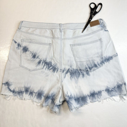 American Eagle Shorts Womens 18 Tie Dye Blue Highest Rise Mom Denim Fray *Flaw
