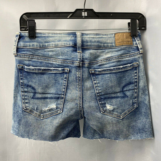 American Eagle Shorts Sz 2 Womens Next Level Stretch Denim Jean Raw Hem Holes