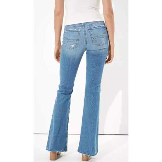 American Eagle Super Hi-Rise Flare Jeans 18 Stretch Blue Denim Distressed NEW