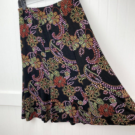 West End Slinky Knit Midi Skirt Sz Large Multicolor Floral A-Line Stretch USA