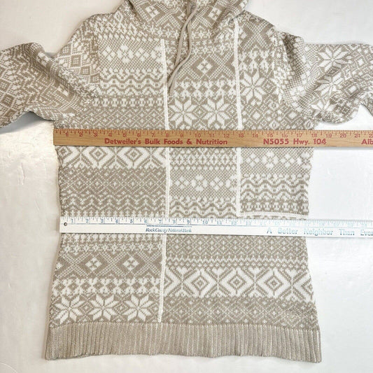 Woolrich Nordic Fair Isle Sweater Sz Medium Beige/White Cowl Cinch Neck Top EUC