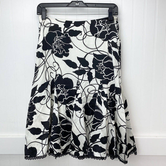 White House Black Market 100% Silk Floral Pleated Skirt Sz 2 Knee Length *Flaw
