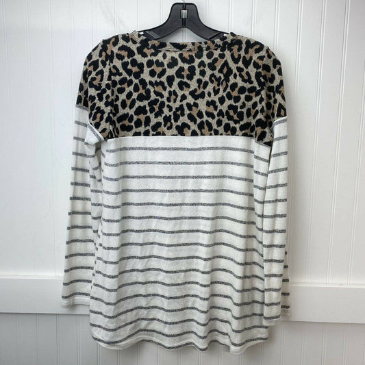 Wanna B Knit Leopard Striped Shirt Sz Medium Ivory/Tan Stretch Long Sleeve Top