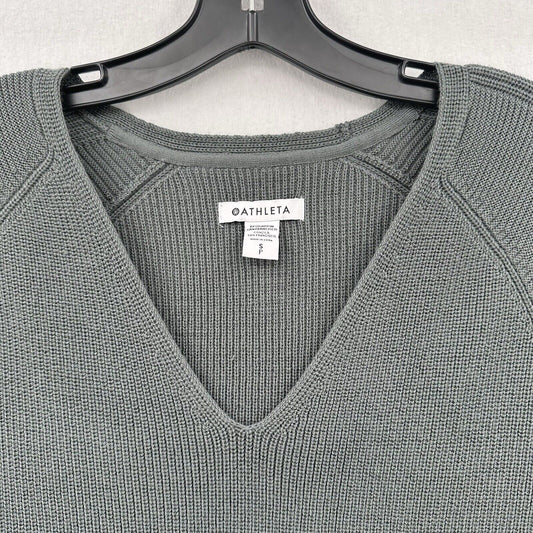 Athleta Sweater Womens Small Hanover V-Neck Gray Knit Merino Wool Blend Relaxed