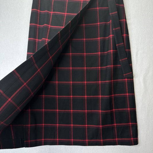 Banana Republic Skirt Women 6 Midi Red Black Plaid Faux Wrap Office Academia NEW
