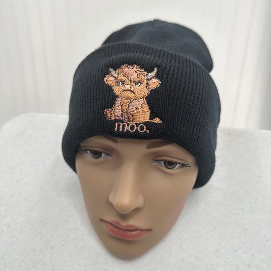 Grumpy Highland Cow Embroidered Beanie Stocking Hat
