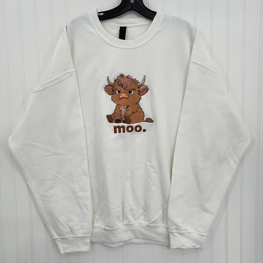 Grumpy Highland Cow Embroidered Adult Unisex Crewneck Sweatshirt