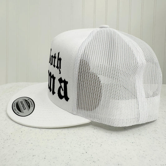 YP Classics Goth Mama Trucker Hat Embroidered White Unisex Mom Gift