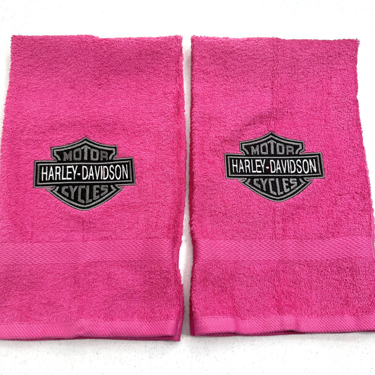 Harley Davidson Towels Embroidered Hand Towel Set Pink Black Bathroom Home Biker Decor