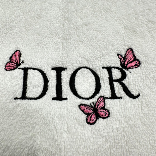 DIOR Style Towels Embroidered Hand Towel Set White Black Pink Butterflies Bathroom Decor