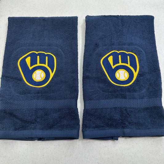 Milwaukee Brewers Towels Embroidered Hand Towel Set Blue Bathroom Home Sports Baseball Decor