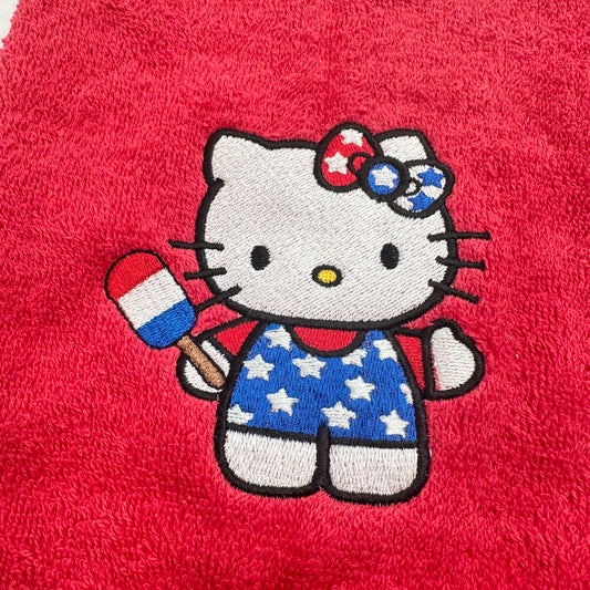 Hello Kitty Towels Embroidered July 4th Hand Towel Set Cute Girly Bathroom Holiday Decor Stars Stripes