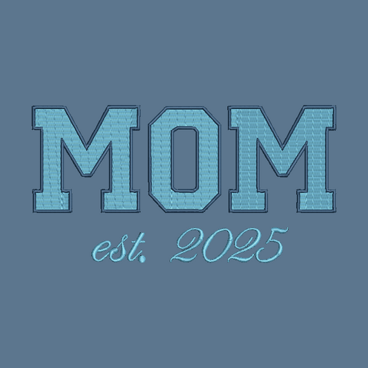 MOM Embroidered Adult Unisex Crewneck Sweatshirt New Mom 2025 Light Blue Thread