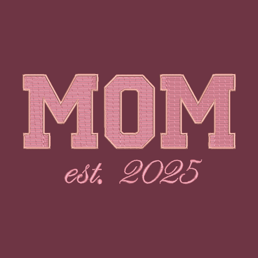 MOM Embroidered Adult Unisex Crewneck Sweatshirt New Mom 2025 Maroon Thread