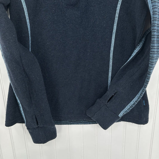 KUHL Sweater Mens M Chianti Fleece 1/4 Zip Blue Wool Blend Long Sleeve Thumbhole