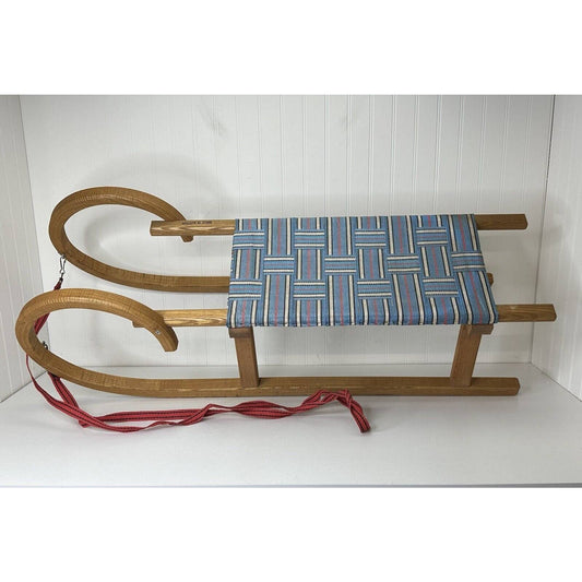 Vintage RIJO Rodel 39” Oak Wood Curly Horned Sledge, Toboggan - Made In Austria