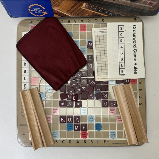 Vintage Scrabble Deluxe Edition 1982 Rotating Turntable Board Game Wooden Tiles