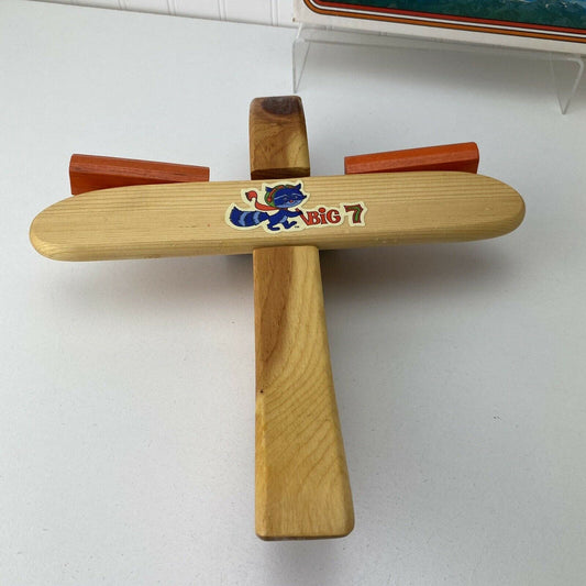 Vintage Sunbow Wooden High Flyer “Big 7” Airplane 1980 Wood Toy Plane W/Box USA