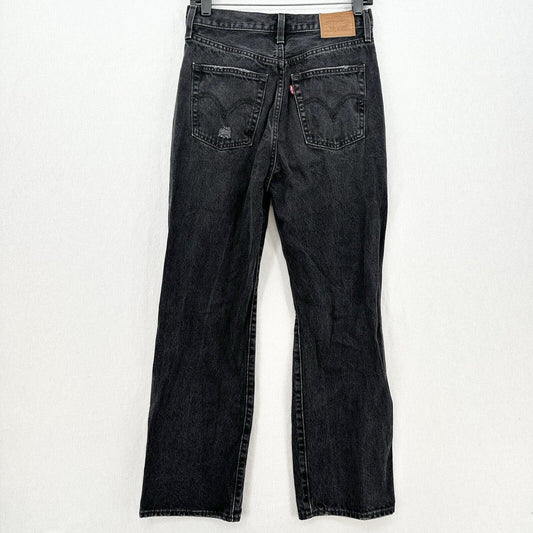 Levis Ribcage Jeans Womens 28 Straight Ankle Faded Black Denim Distressed Grunge