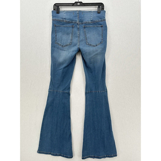 Free People Flare Jeans Womens 28 Midrise Pull On Blue Stretch Denim Bell Bottom