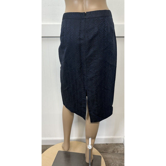 Lafayette 148 Skirt Women 12 Navy Blue Pencil Knee Length Back Slit Acetate/Silk