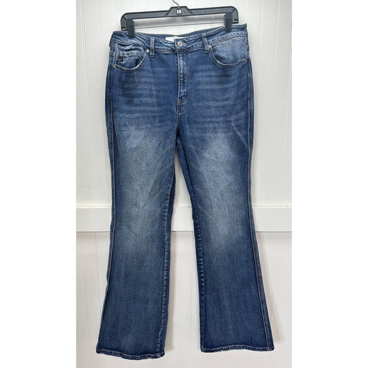 Kancan Luke High Rise Flare Jeans Womens 15/31 Blue Denim Medium Wash Distress