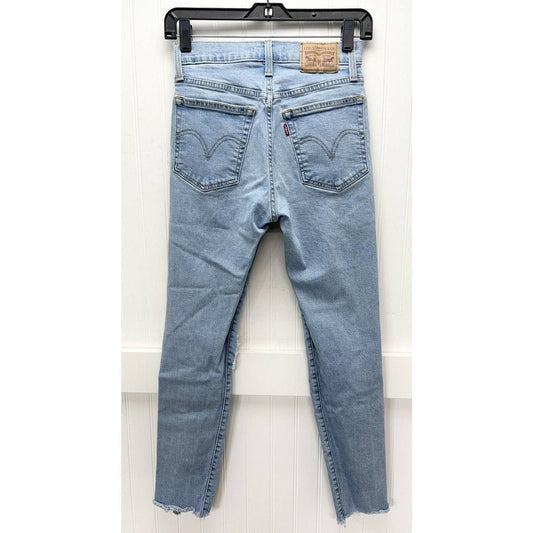 Levis Wedgie Skinny Ankle Jean 26 (US 2/3) Denim Button Fly Distress Fray *Flaw