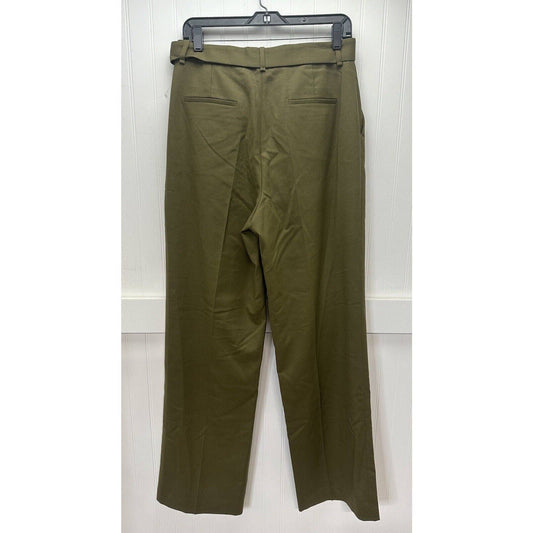 Massimo Dutti Wide Leg Trousers Euro 40 (US 8) Green Wool Blend Pleated Belt NEW