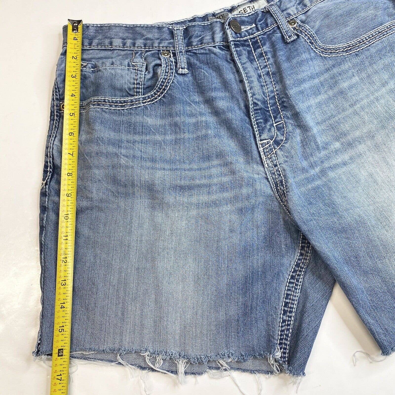 BKE Buckle Seth Cut Off Shorts Mens 36 Denim Blue Jean Short Distress Light Wash