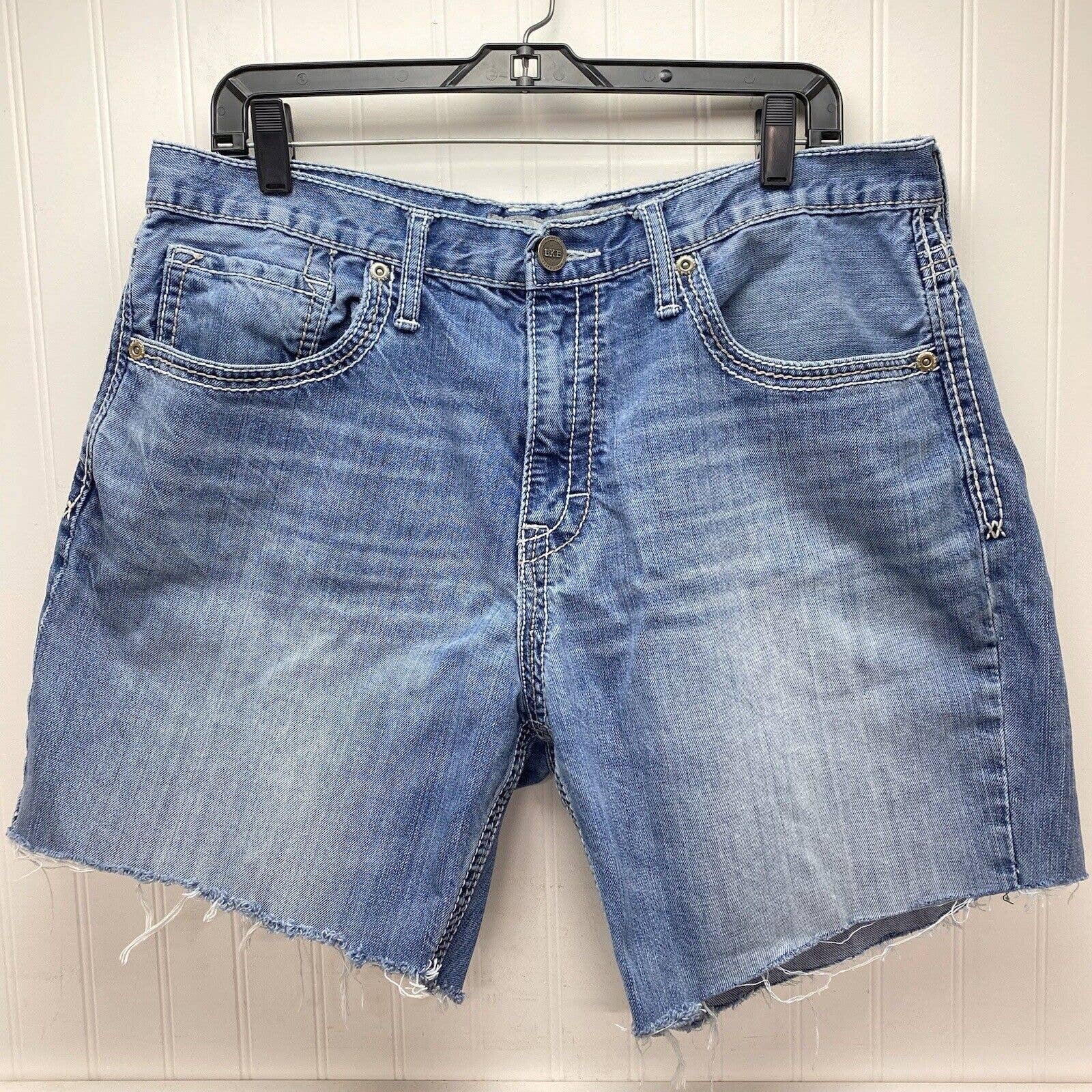 BKE Buckle Seth Denim Cut Off Shorts Mens 36 Denim Blue Jean Short Distressed Raw Hem Fray Light Wash Boyfriend