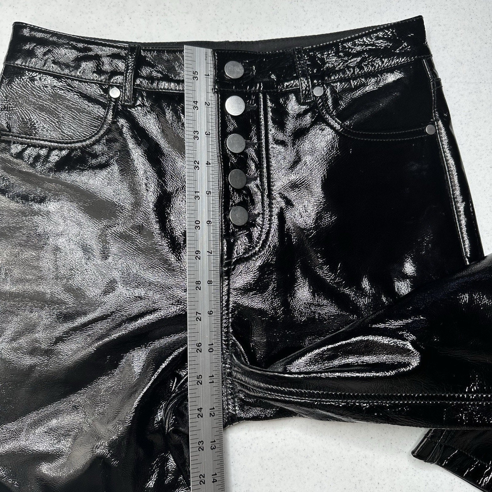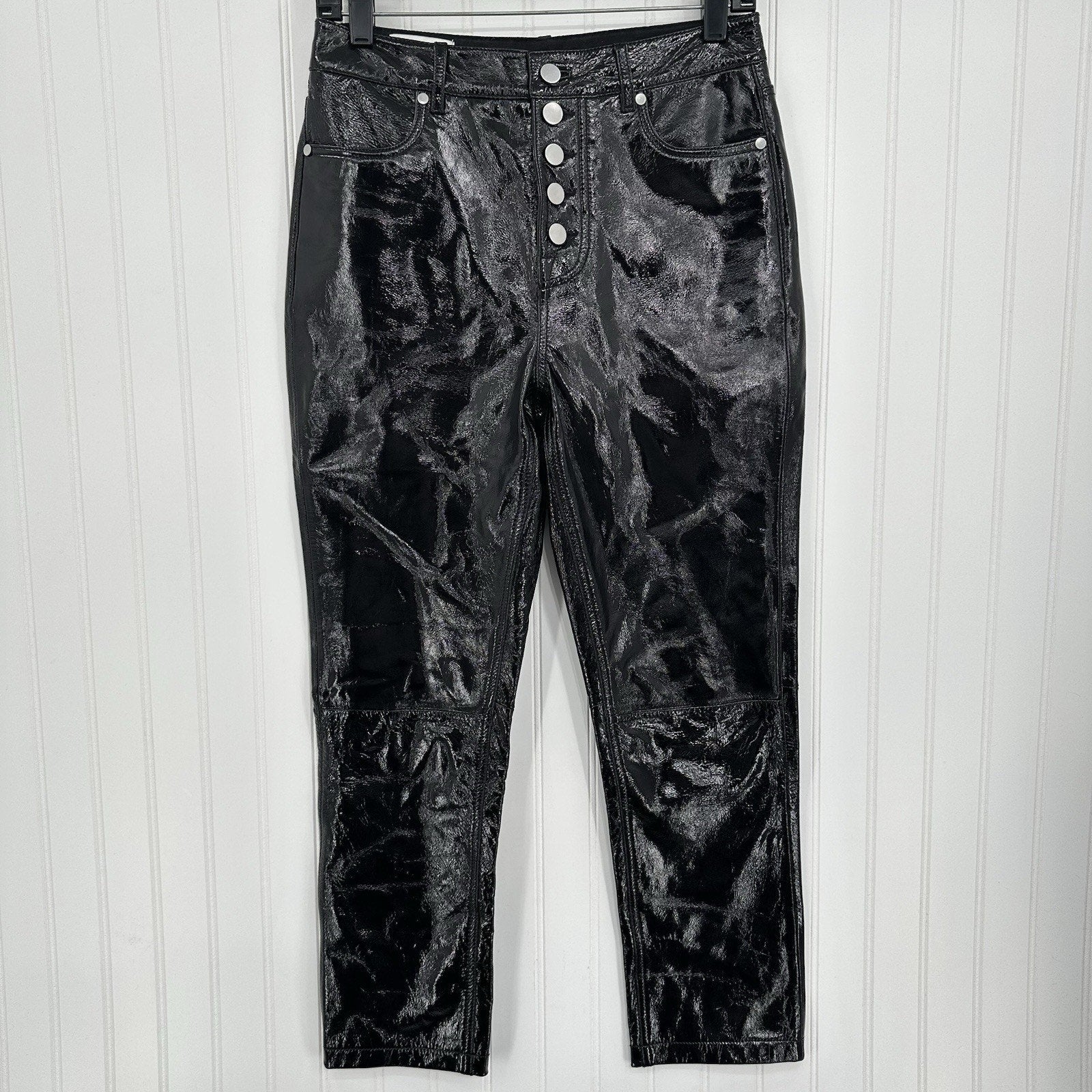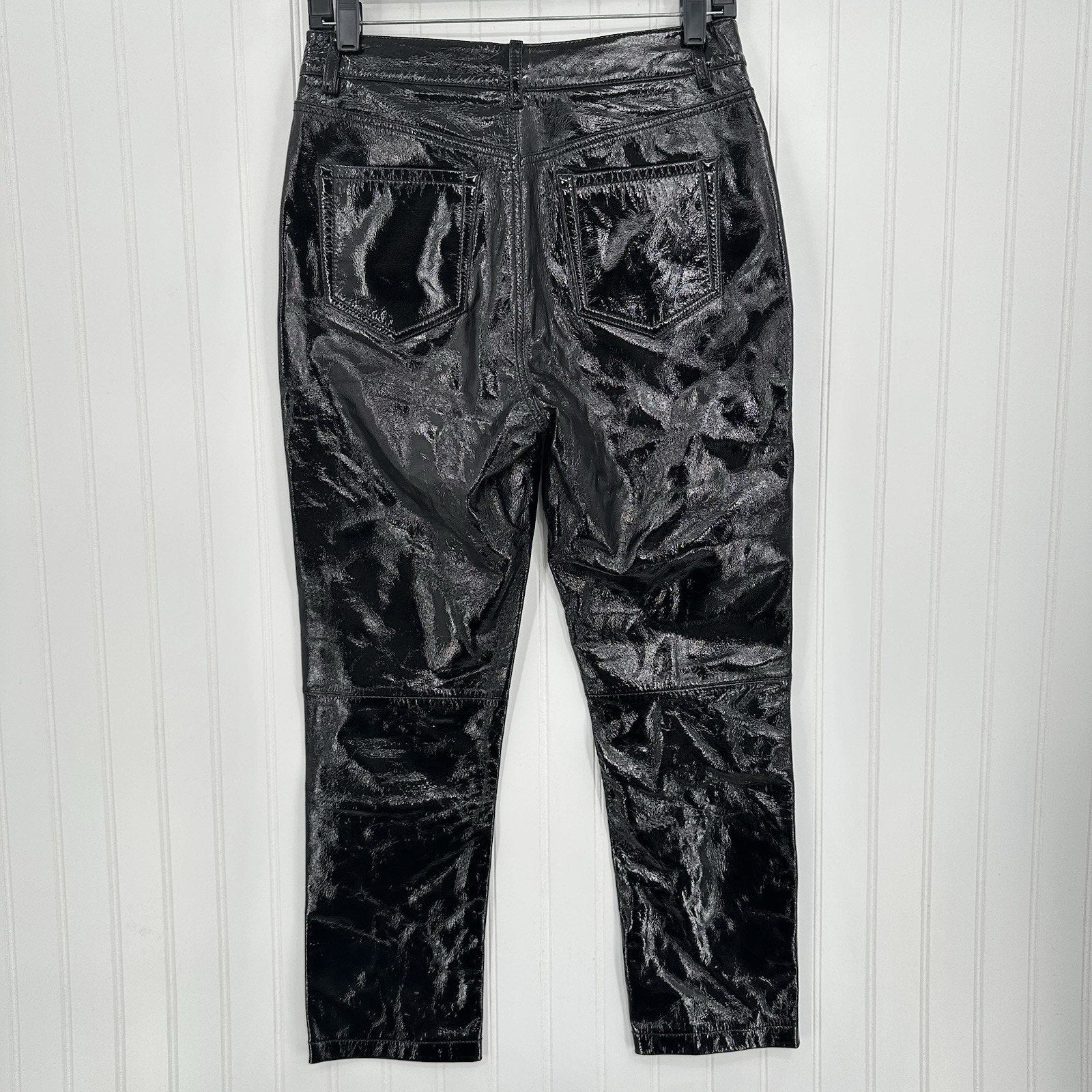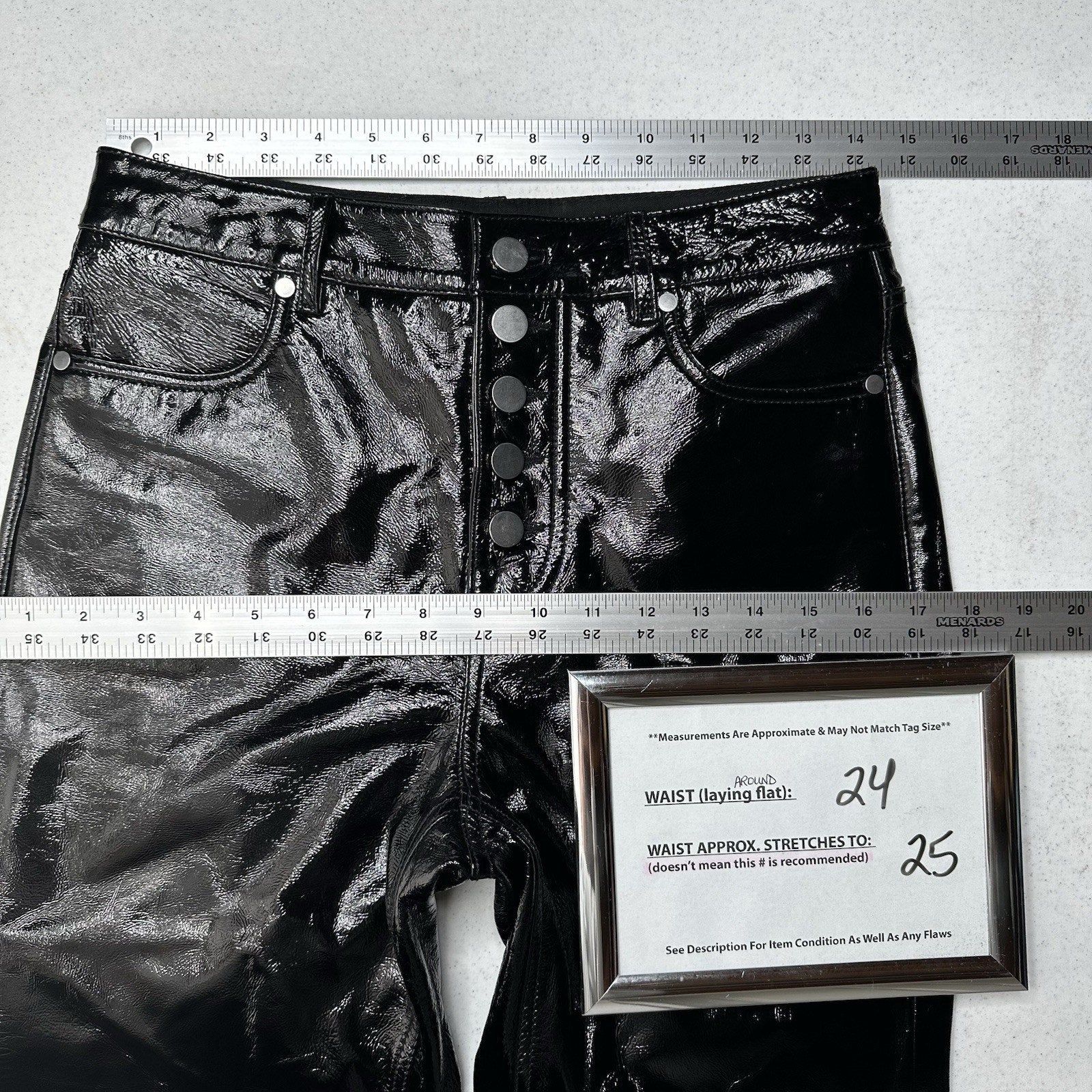 BLDWN Parker Leather Pants Womens 25 Straight Cropped High Rise Black Genuine Leather Shiny Button Fly EUC