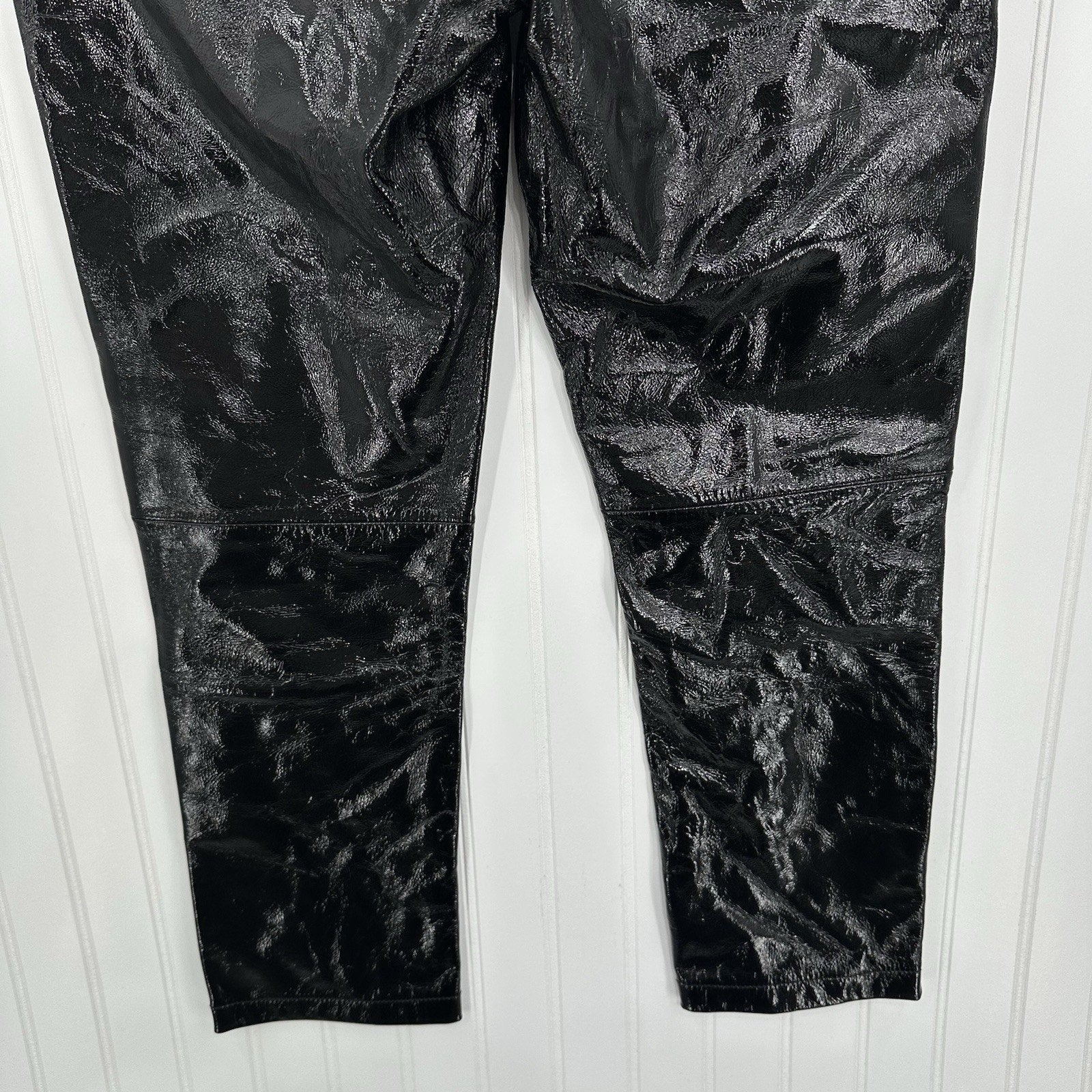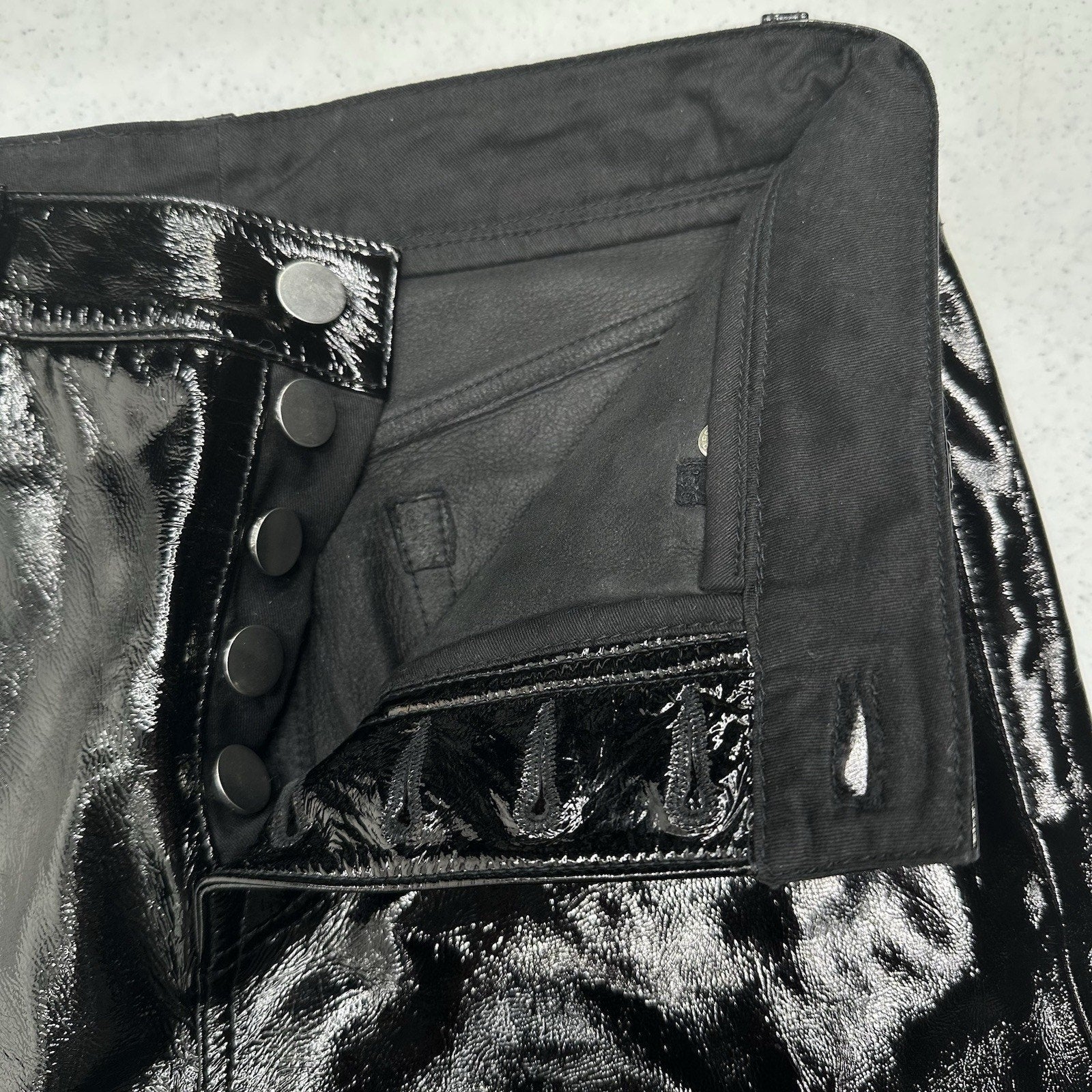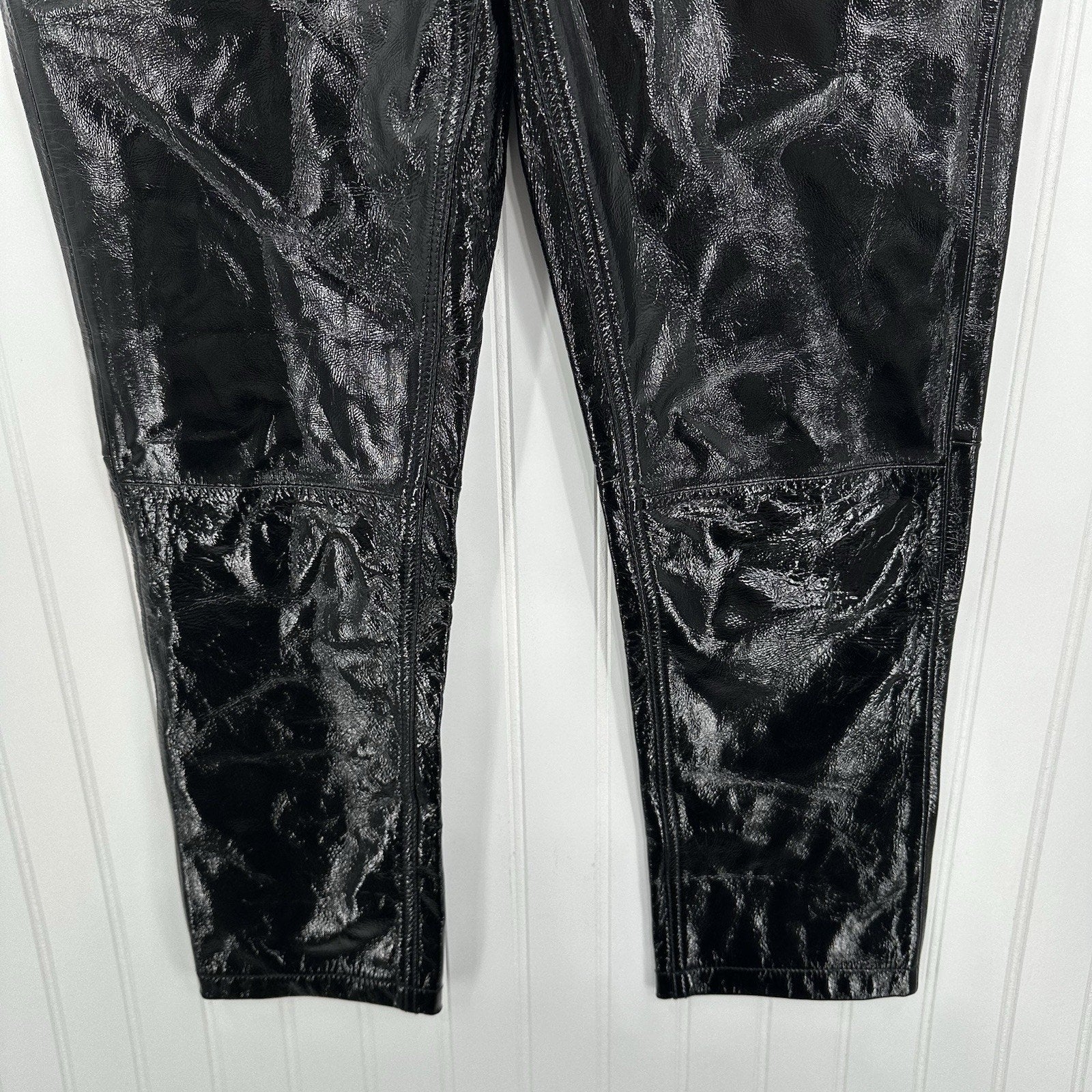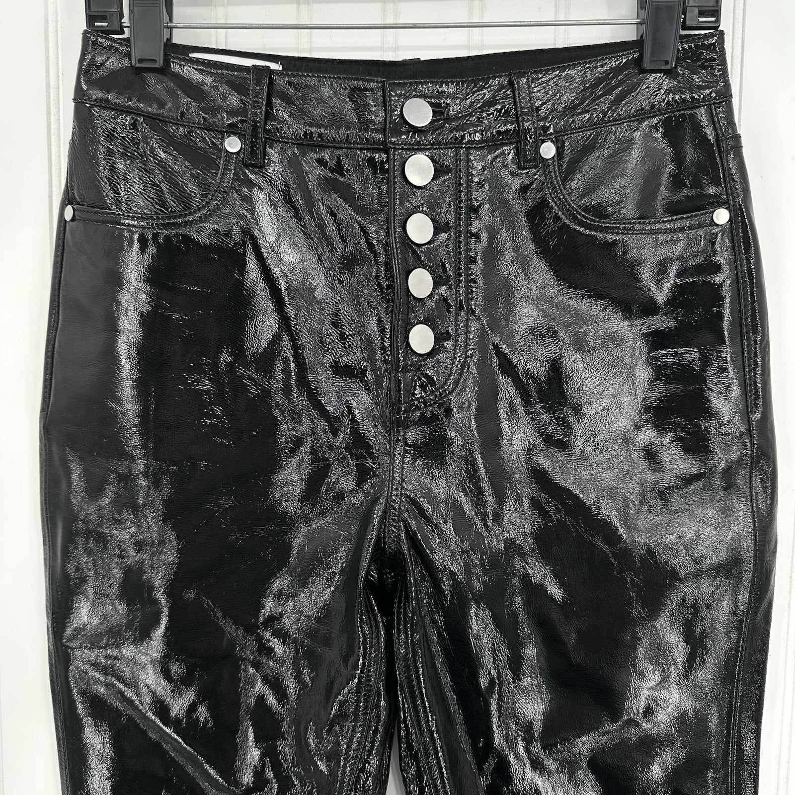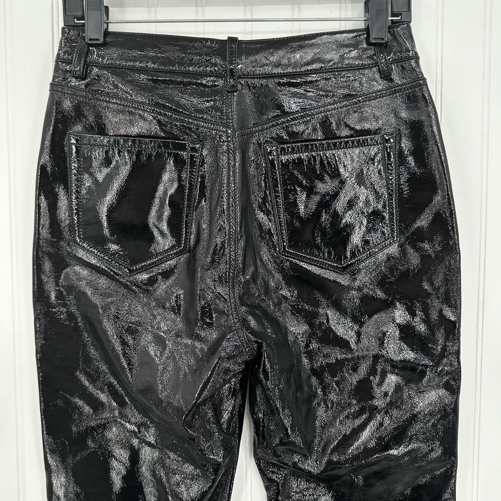 BLDWN Parker Leather Pants Womens 25 Straight Cropped High Rise Black Genuine Leather Shiny Button Fly EUC
