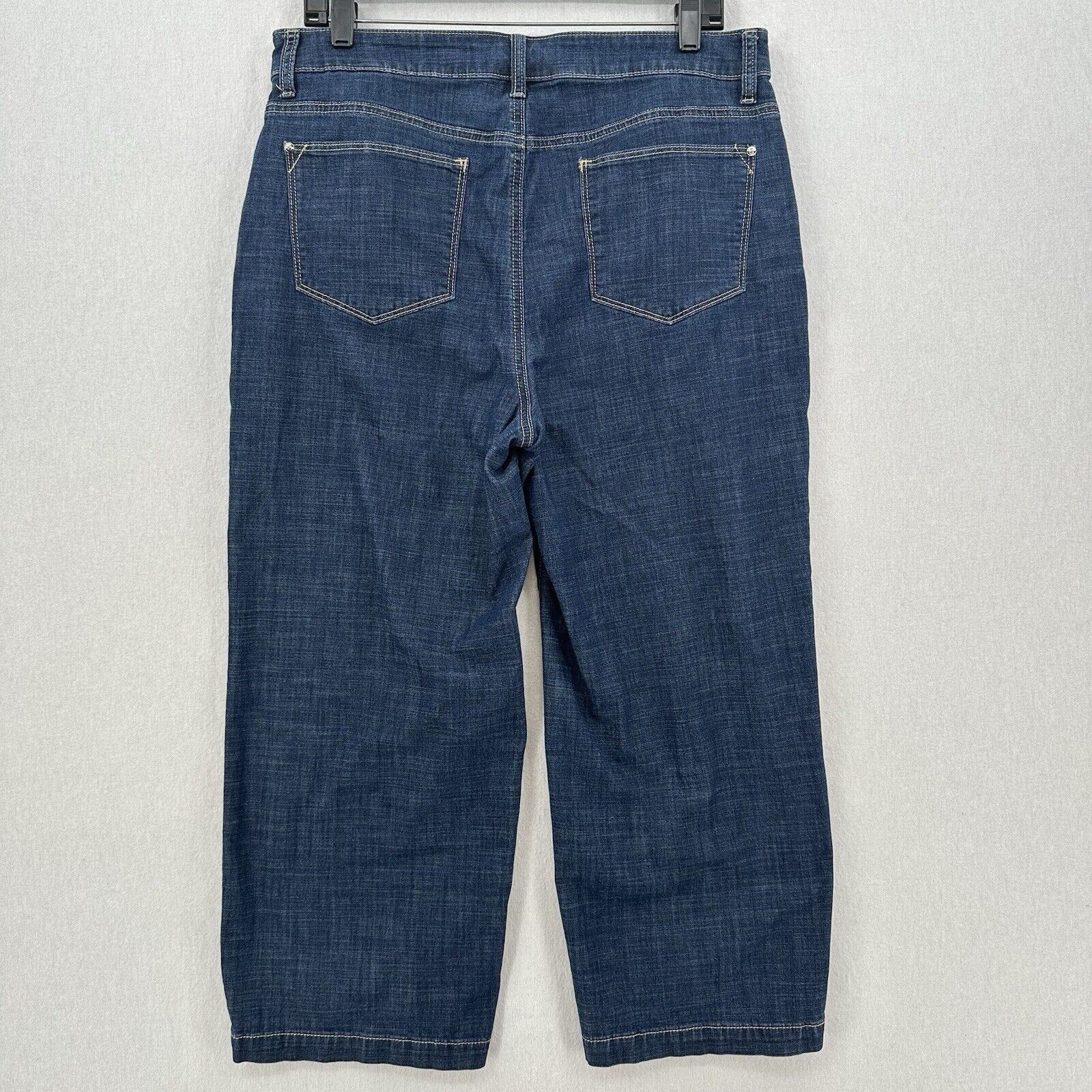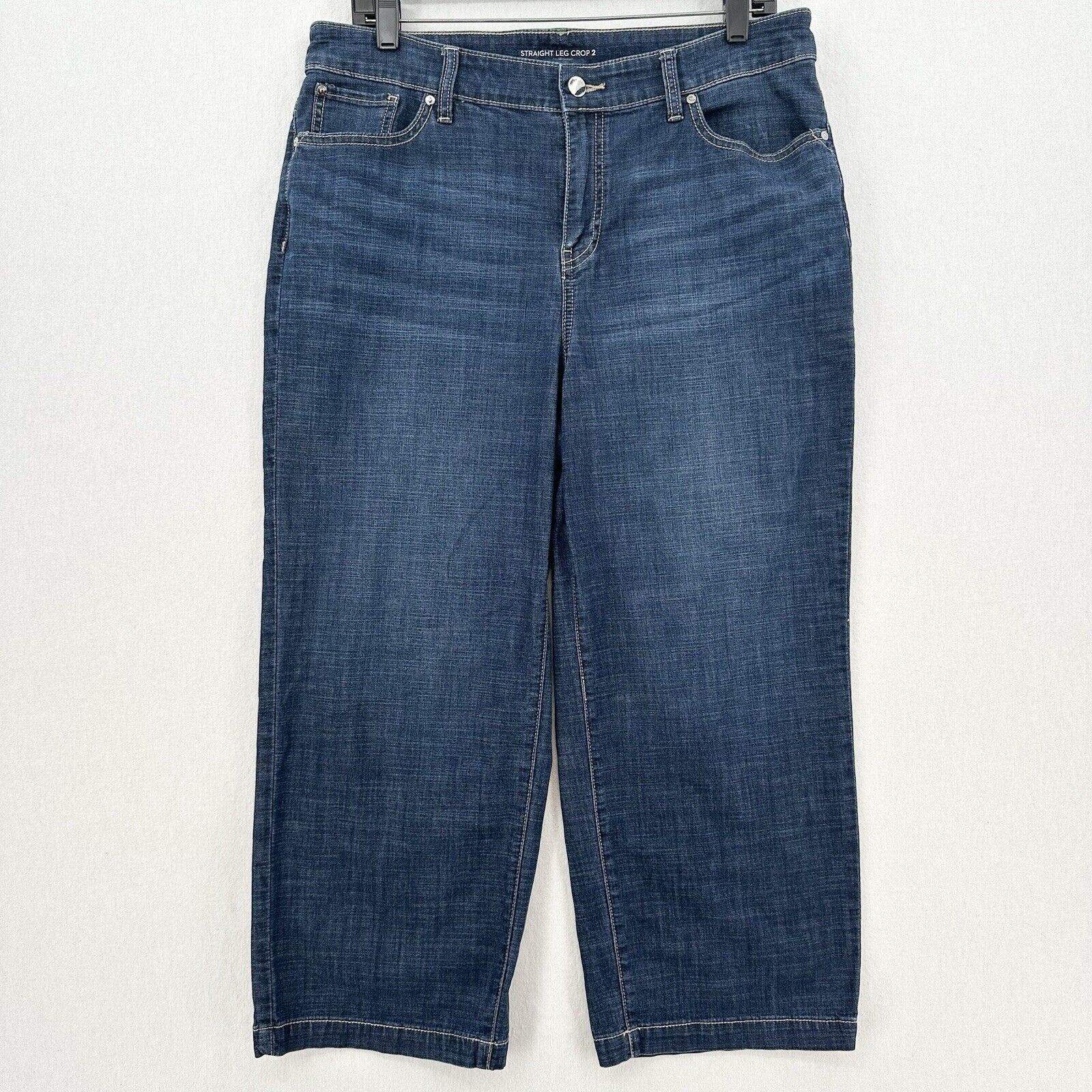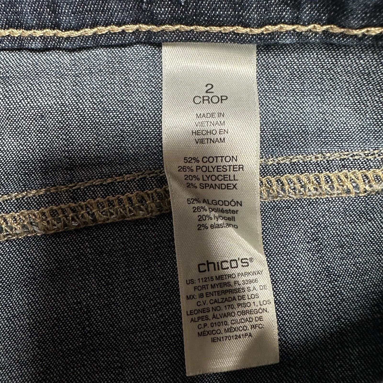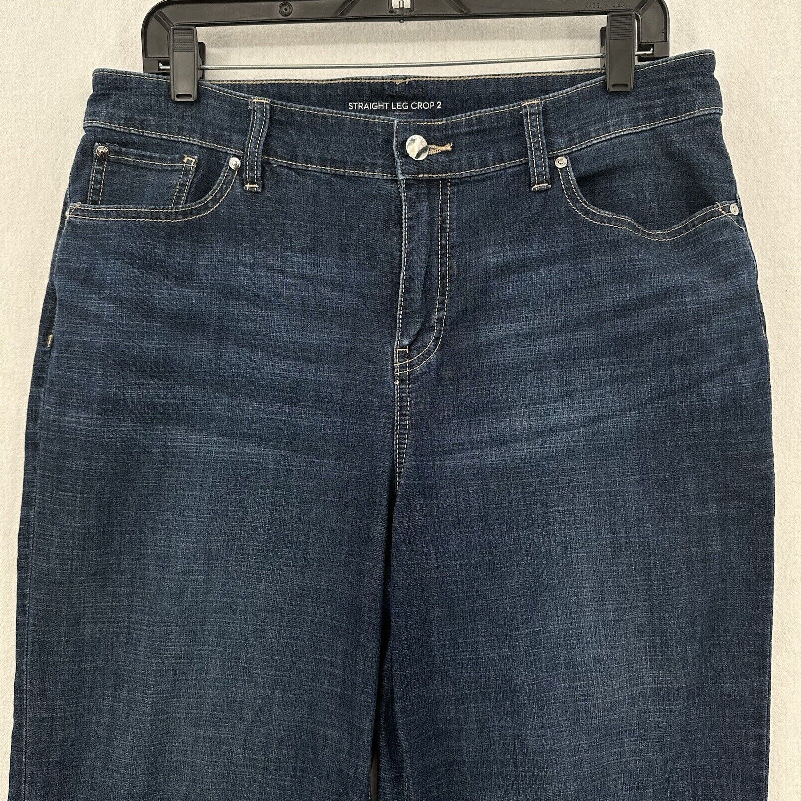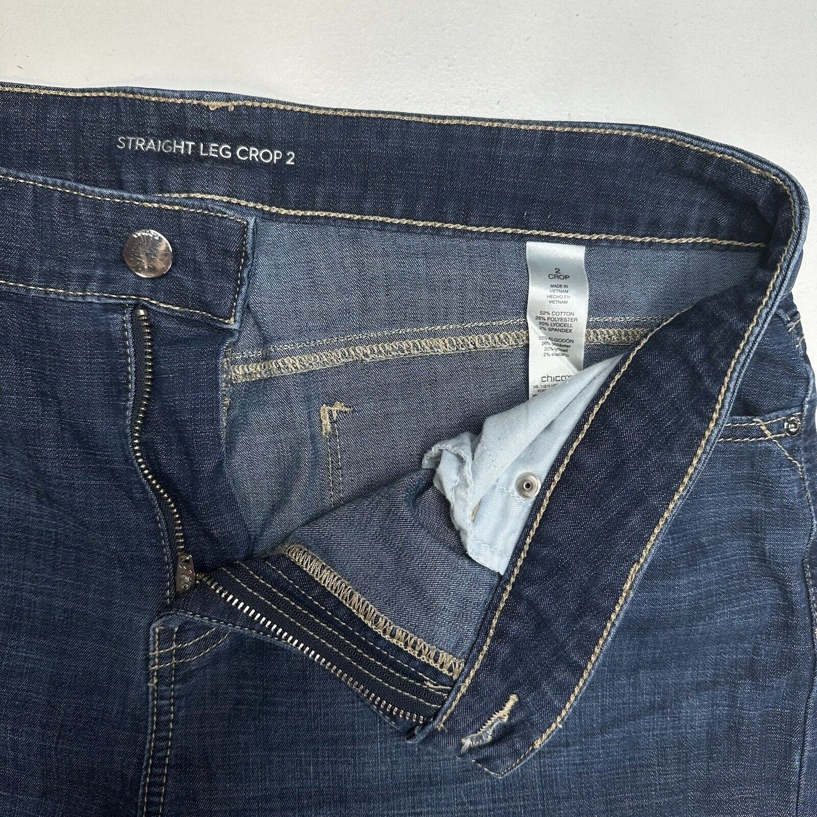 Chicos Jeans 2 Womens 12 Straight Crop Blue Stretch Denim Casual Dark Wash