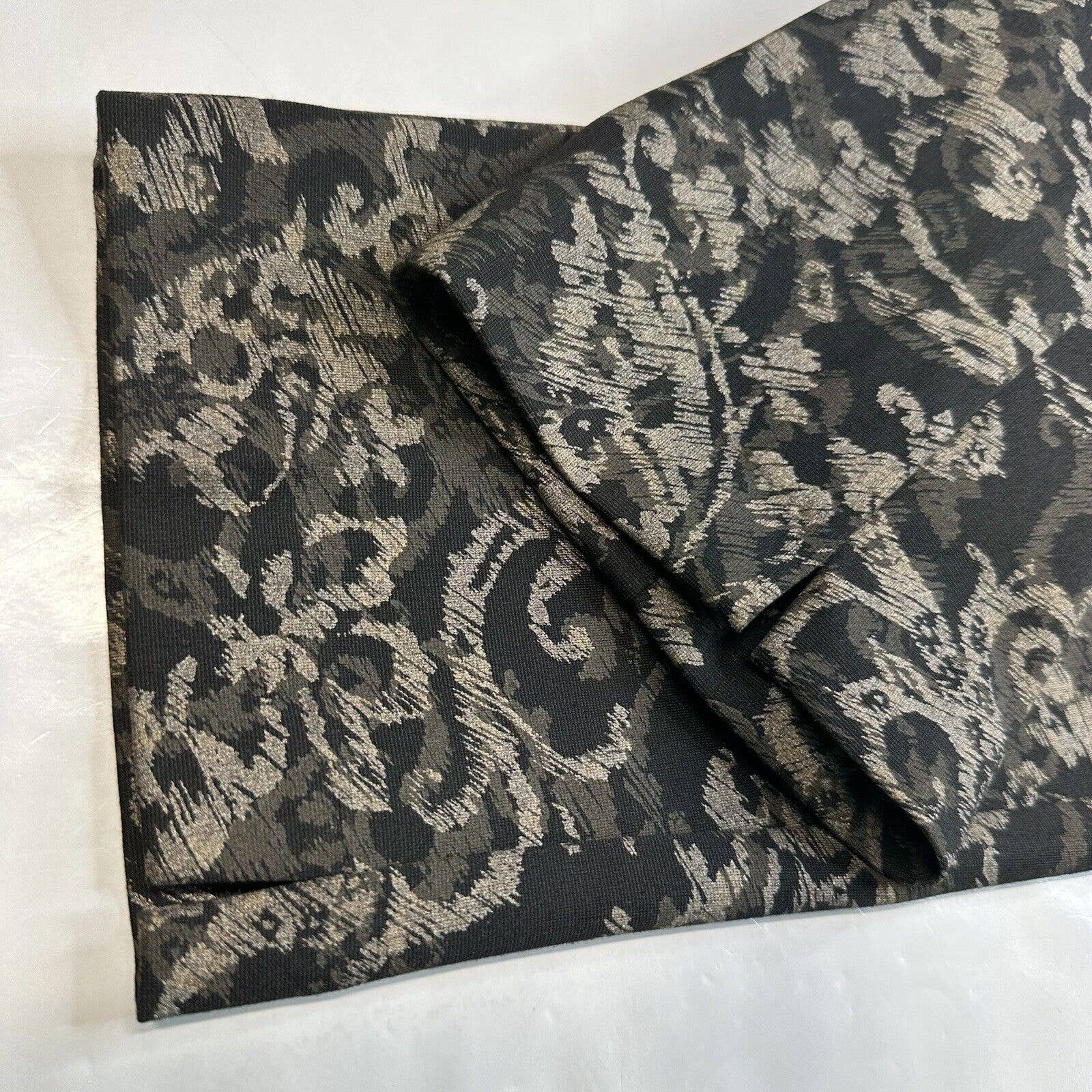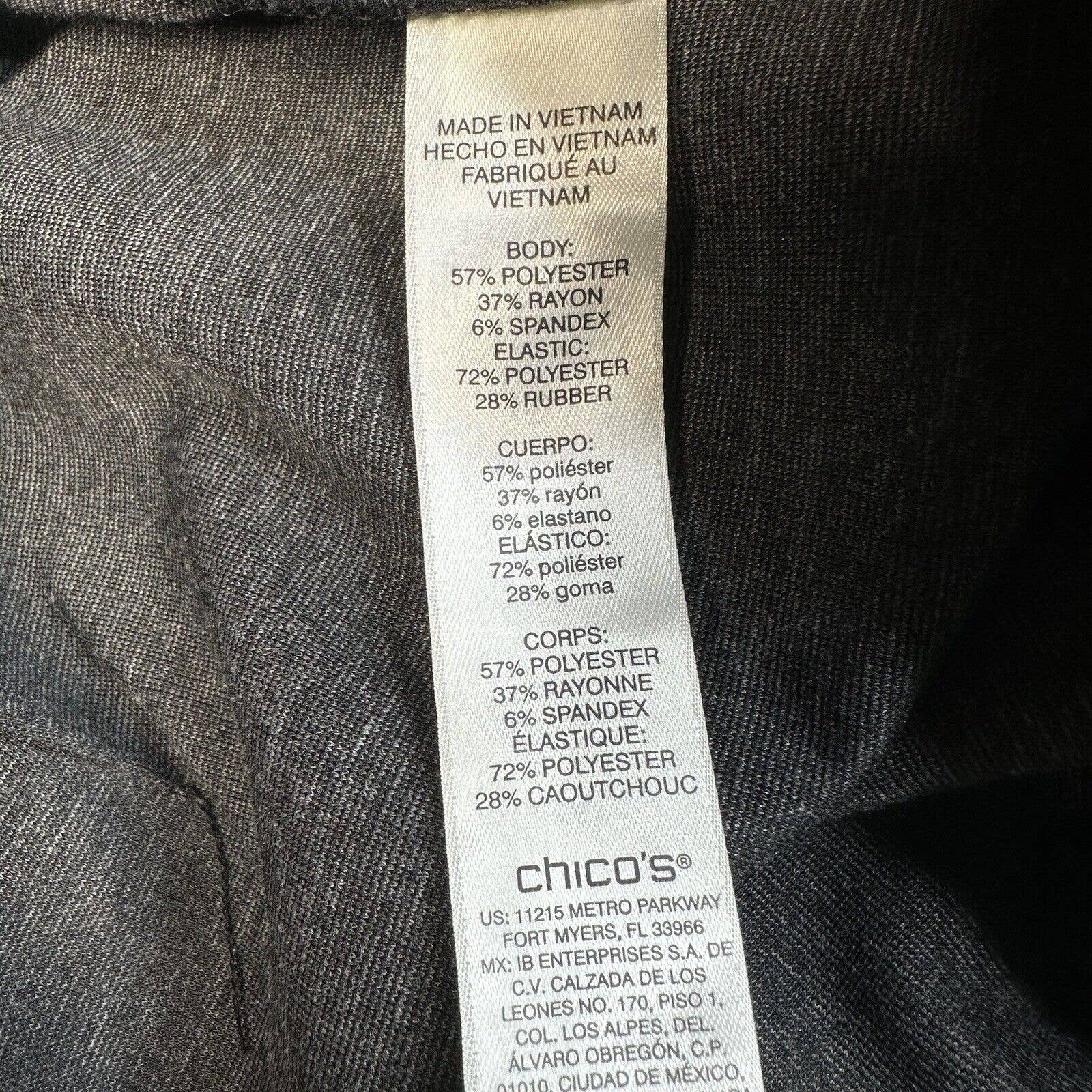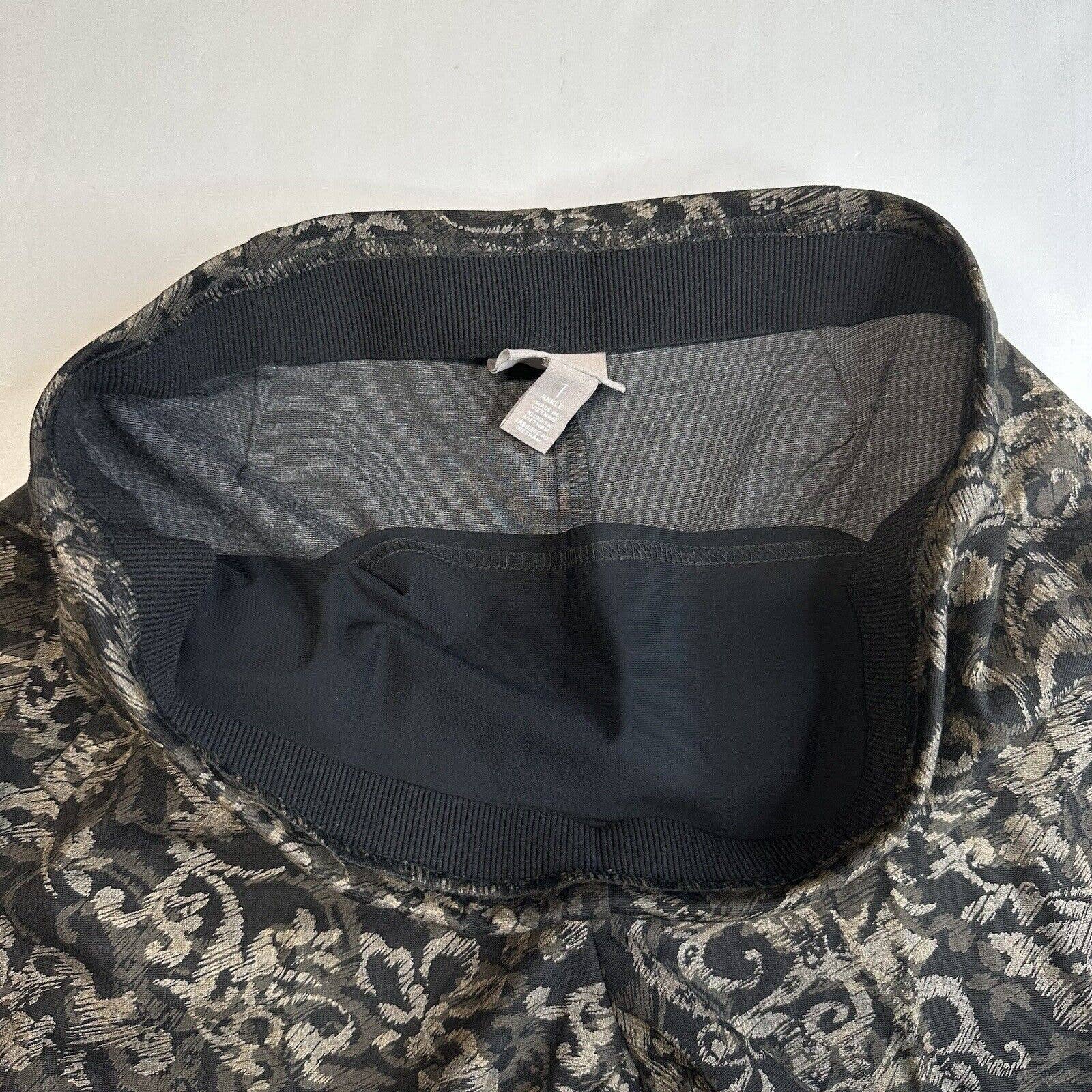 Chicos Ponte Knit Slim Ankle Pants Chico's Size 1 Womens (US 8/Medium) Tan Brown/Black Shimmer Floral Pattern Stretch Pull On Cropped Casual/Career/Work Pants. Slimming Tummy Panel, Elastic Waist And No Pockets.