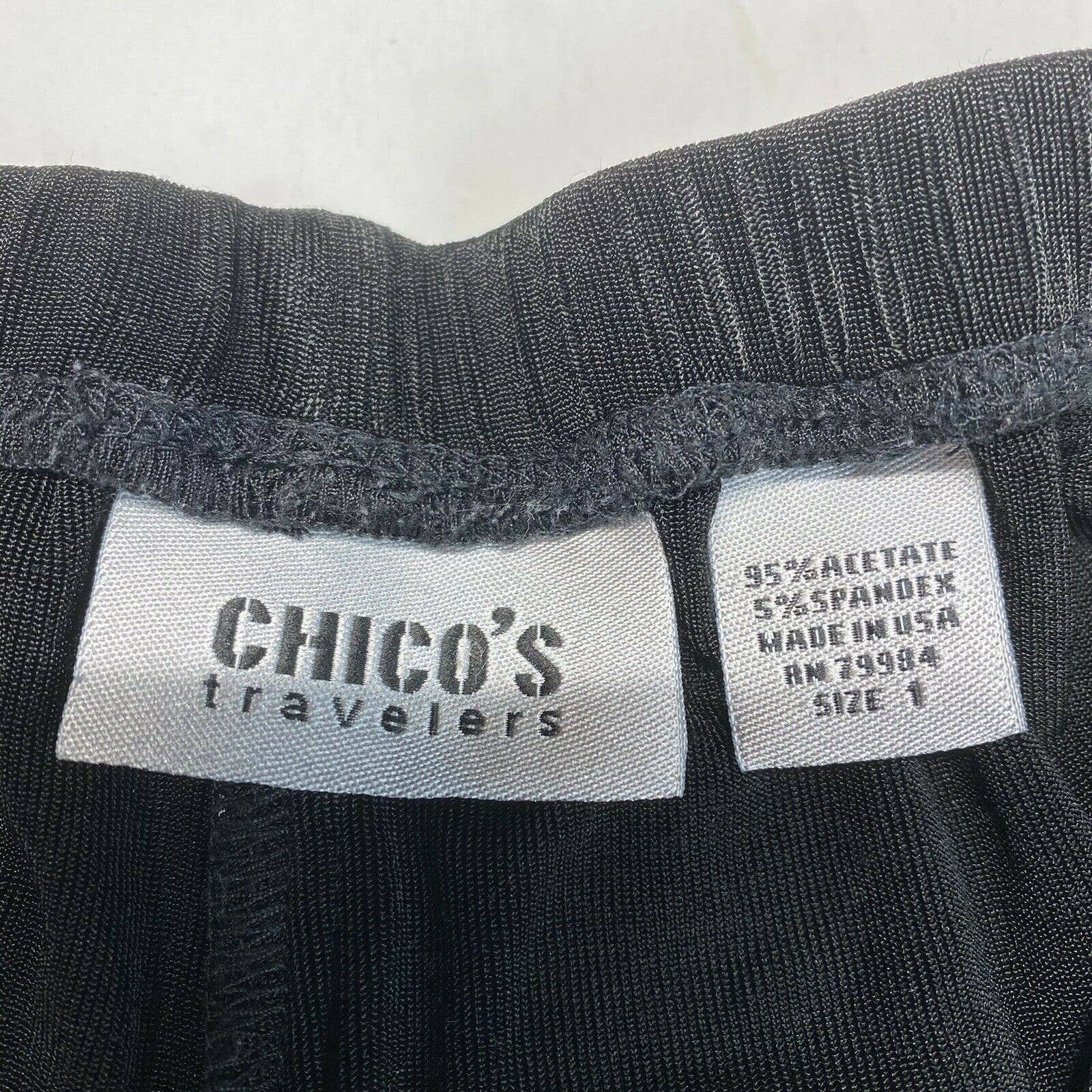 Chicos Travelers Slinky Knit Straight Leg Pants Sz 1 (US 8) Black Stretch Acetate *Flaw