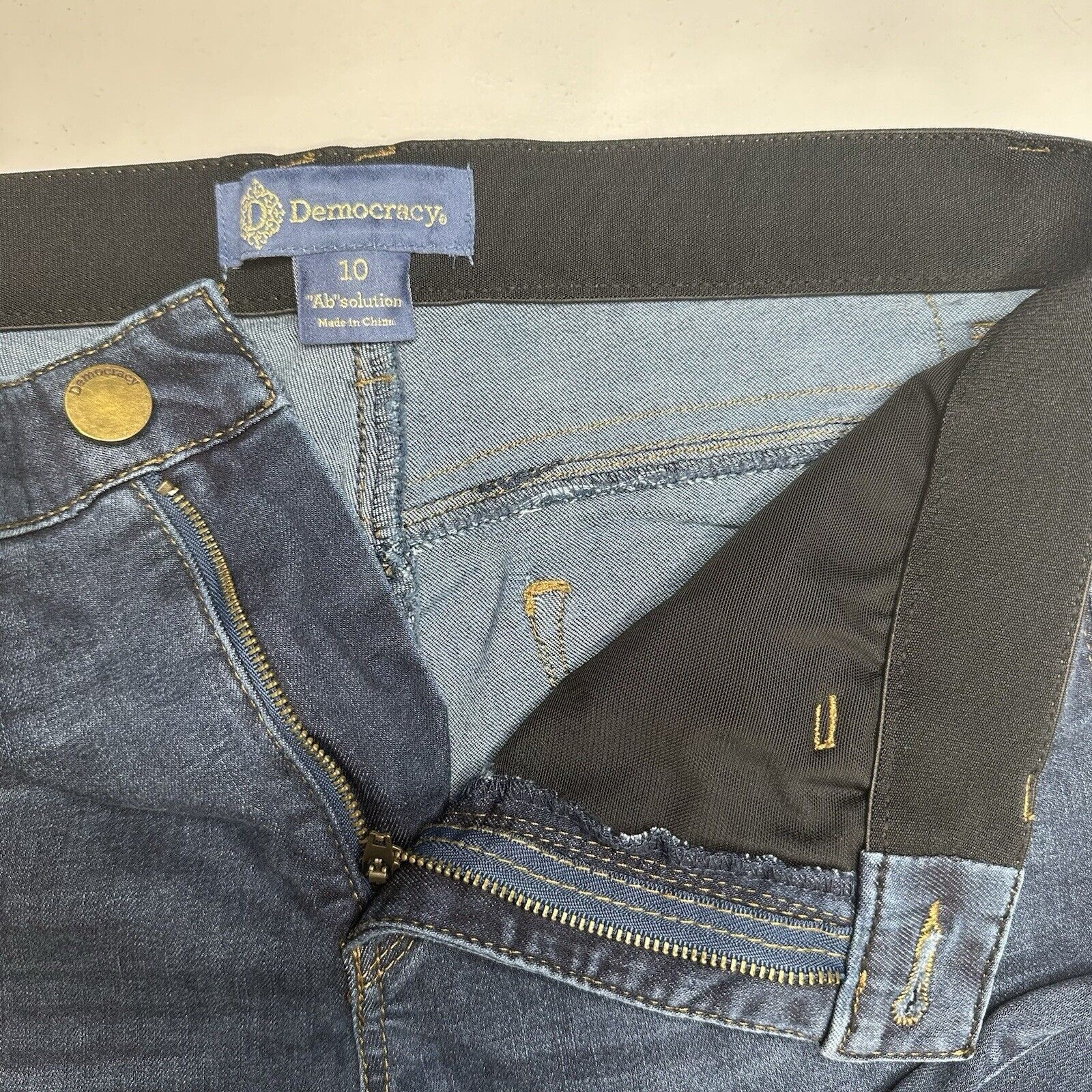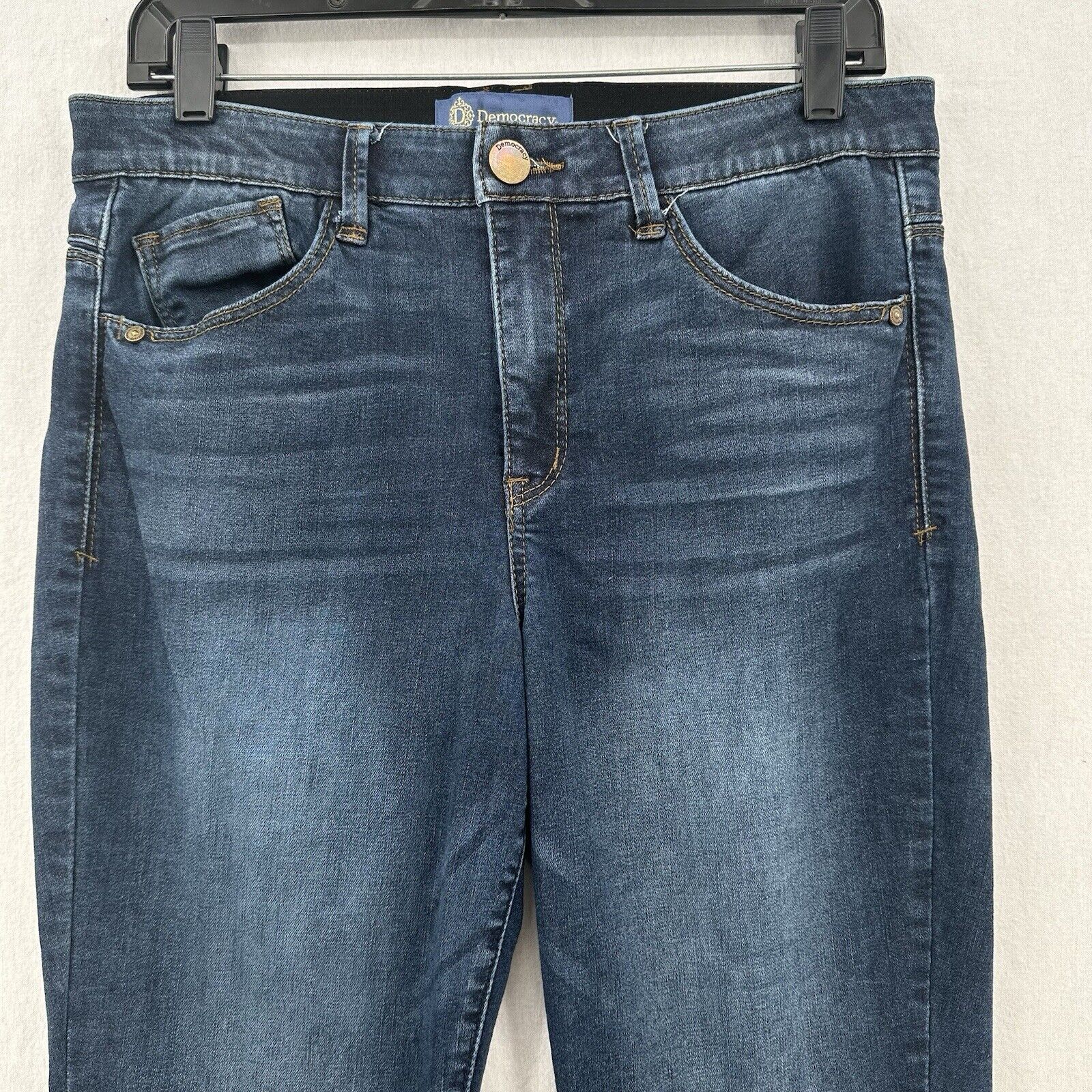 Democracy Jeans Womens 10 Skinny Ab Solution Blue Stretch Denim Dark Wash Tummy Control Slimming Panel Magic Waistband Booty Lift