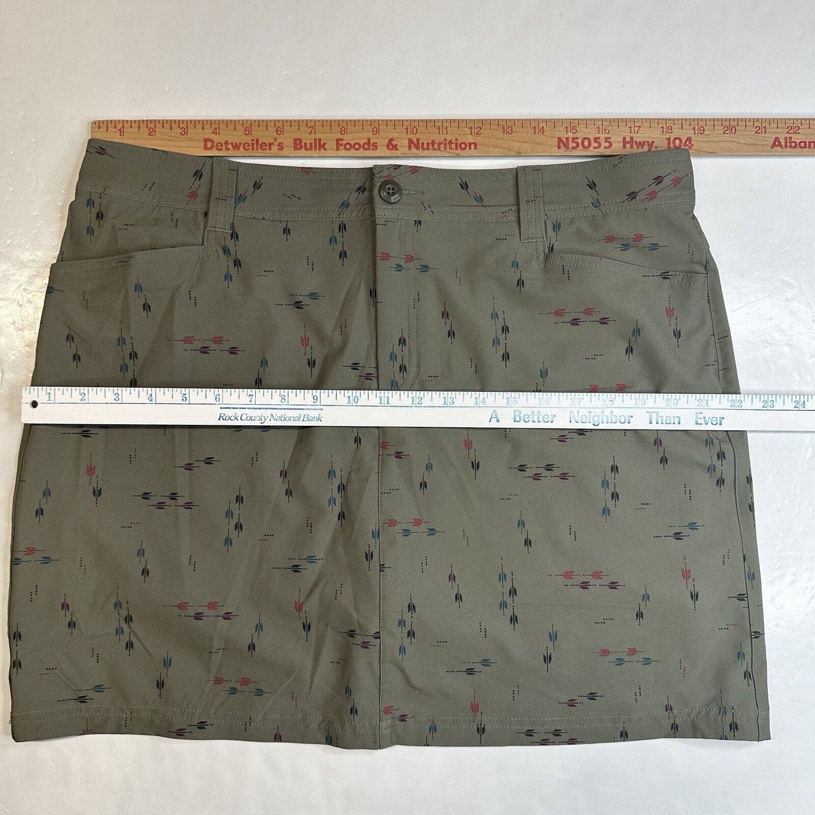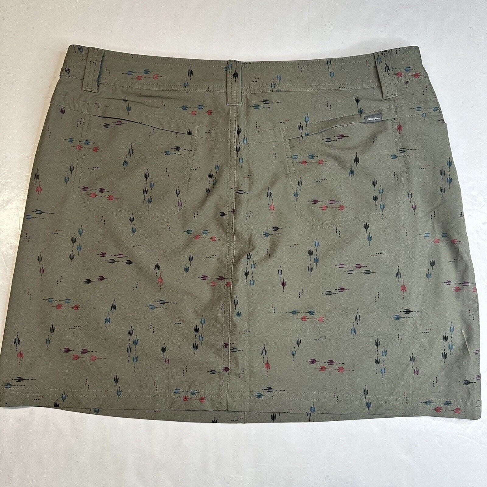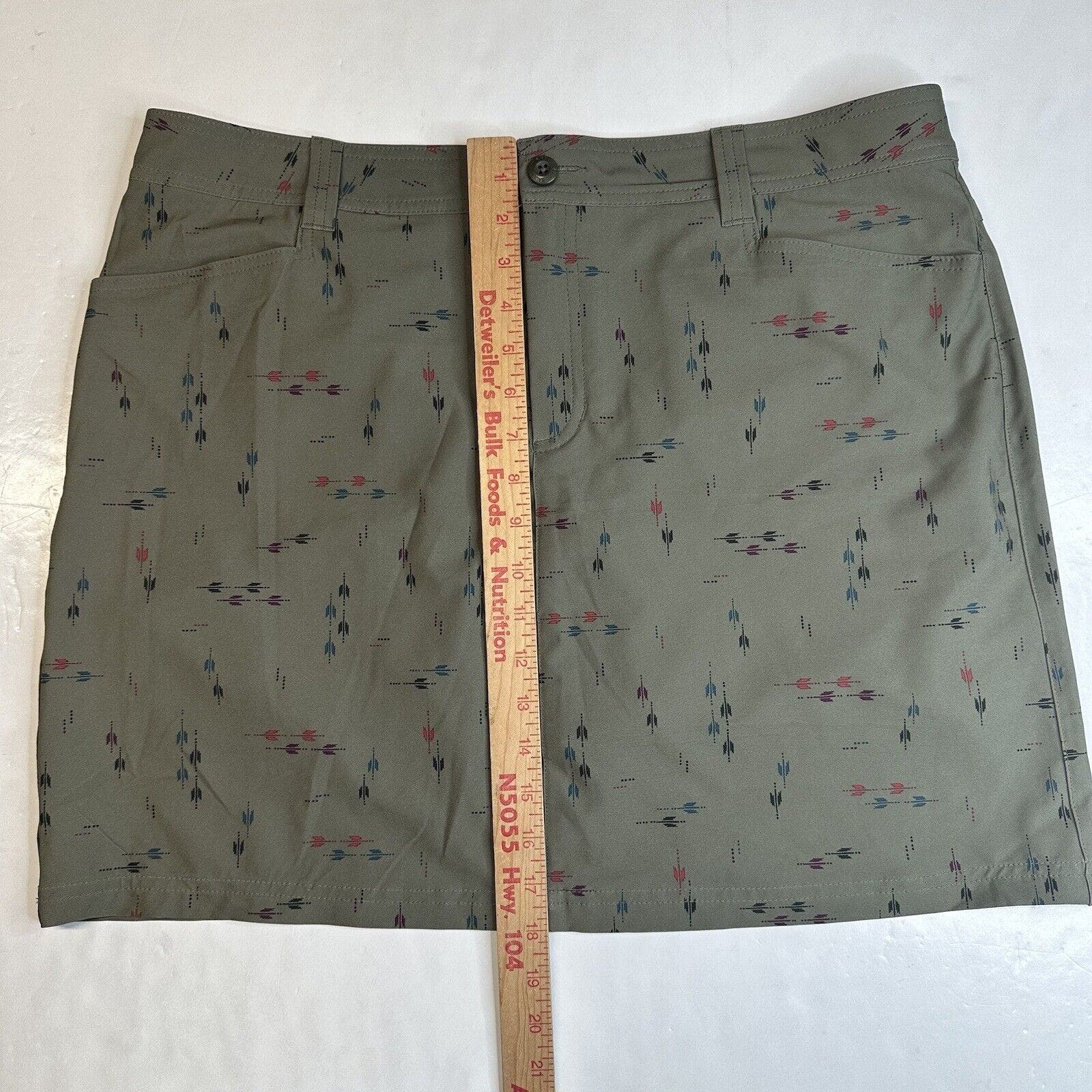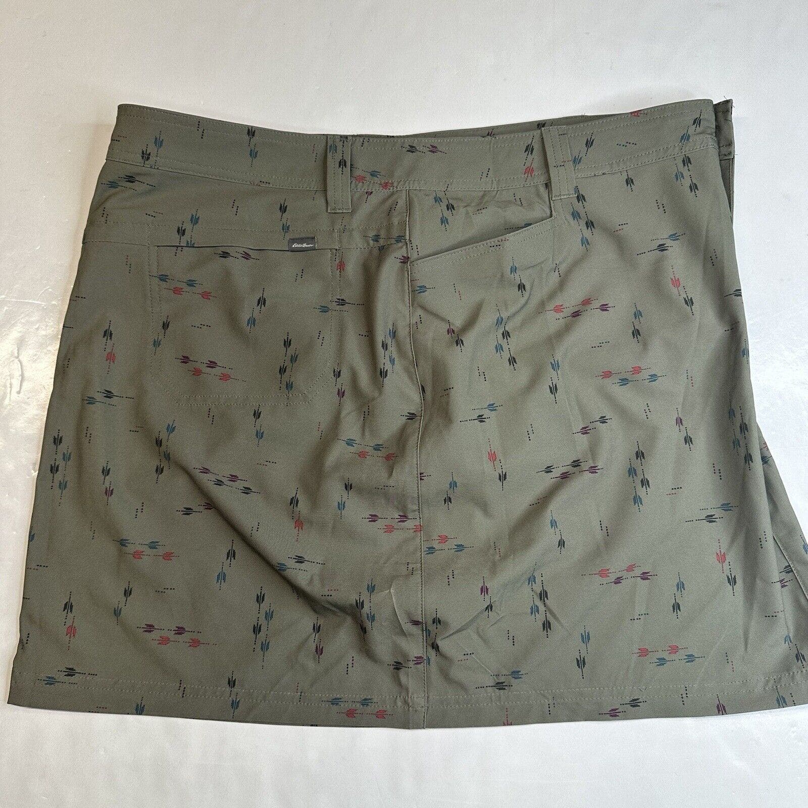 Eddie Bauer Skort Womens 16 Olive Green Arrow Pattern Active Casual Golf Hiking Skirt With Built In Shorts EUC